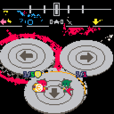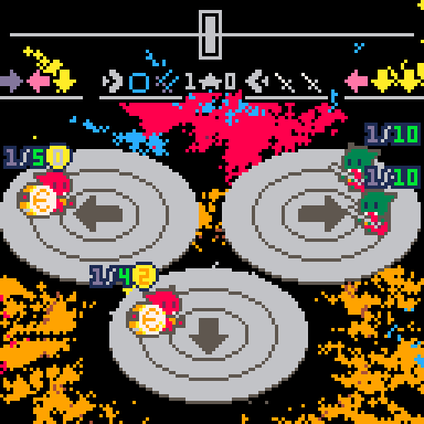 This game is all about inputting three commands in rhythm, then watching how those combinations play out. It's a mix of rhythm and strategy, where you need to closely observe your opponent's inputs and make split-second decisions in a psychological battle!
